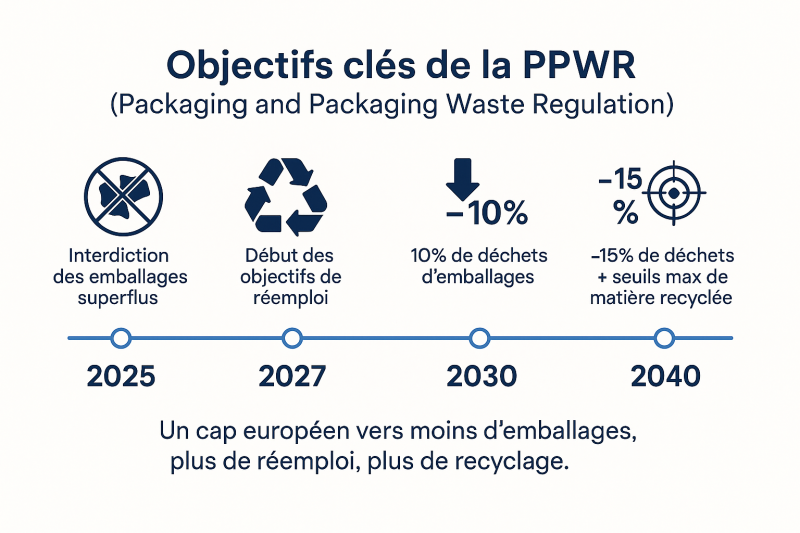 | 2024-2025 | Adoption formelle de la PPWR et début de l'entrée en vigueur progressive. |