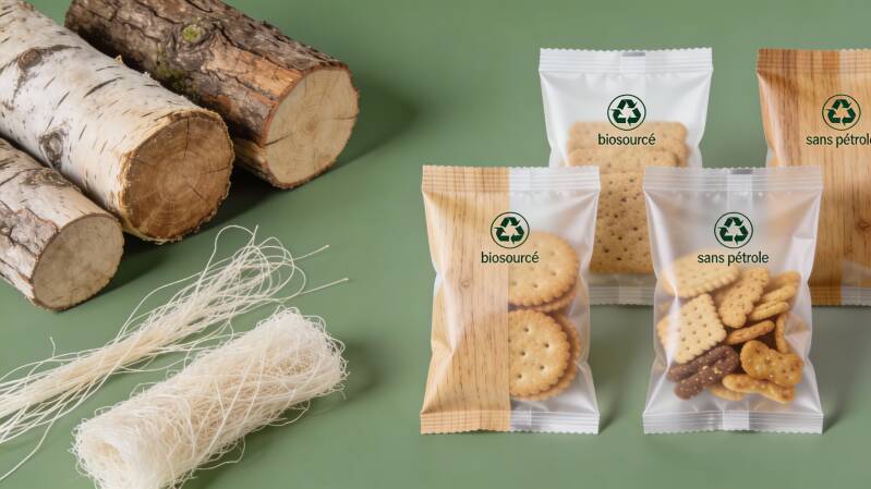 Le résultat : un matériau pouvant être extrudé en films ultrafins, transparents, avec une rigidité modulable, allant jusqu’à des valeurs proches de celles du verre, tout en conservant une déformabilité significative (allongement à la rupture de l’ordre de 130%). Cette combinaison en fait un candidat sérieux pour de nombreux formats d’emballage alimentaire souple : films de conditionnement, sachets, enveloppes protectrices.