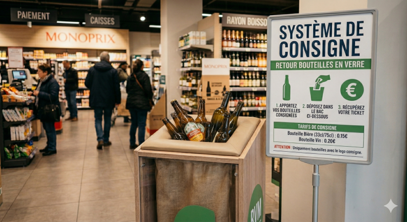 Mais le développement le plus inattendu vient des spiritueux. En 2026, une coalition regroupant Pernod Ricard, Bacardi-Martini, Campari, Rémy Cointreau et Giffard lance une expérimentation dans 350 magasins Carrefour et Monoprix : Ricard, Get 27, Picon, Cointreau en bouteilles consignées à 50 centimes, avec lavage assuré par Eco in Pack à Cognac. Des marques leaders, pas des acteurs de niche — c'est le signal le plus fort envoyé par la filière boissons depuis le lancement de ReUse Citeo.
